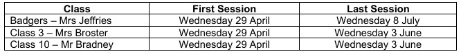 If there is a medical reason why your child cannot take part in these sessions at any time, please let us know ASAP - ideally by notifying us in writing