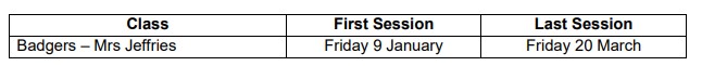 If there is a medical reason why your child cannot take part in these sessions at any time, please let us know ASAP - ideally by notifying us in writing